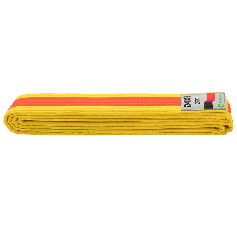 DAX keltainen vyö oranssilla raidalla